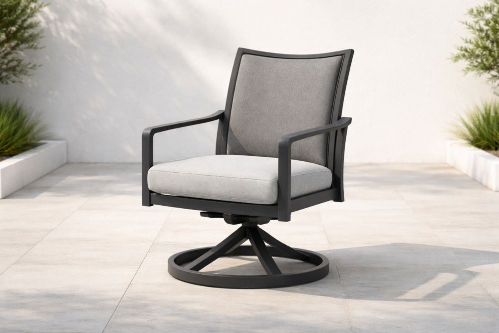 Chaise pivotante extérieure en aluminium avec coussins gris