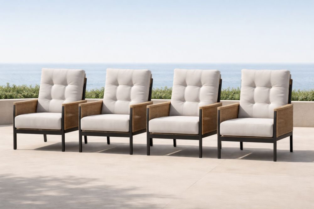 • Matériau : Cadre en aluminium, accoudoirs en rotin synthétique PE tressé , coussins en tissu polyester