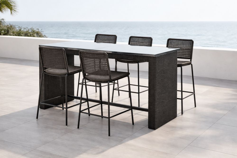 Ensemble de Bar Extérieur en Rotin Synthétique et Verre 5 Pièces