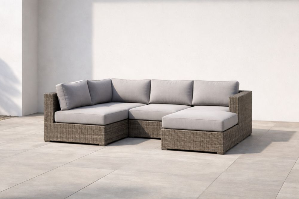 Ensemble Modulable de Canapé d'Angle en Résine Tressée et Tissu Gris