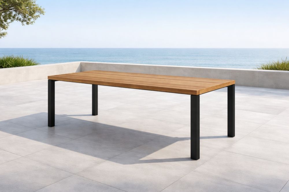 Table rectangulaire en teck et acier pour extérieur 220x100x75 cm